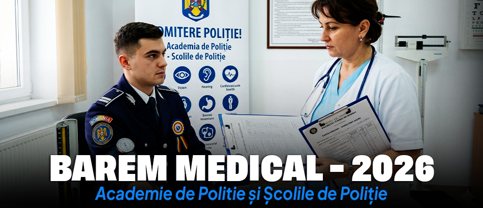 Vizita medicală este una dintre cele mai temute etape pentru candidații la Academia de Poliție „Alexandru Ioan Cuza” și la Școlile de Agenți de Poliție („Vasile Lascăr” Câmpina și „Septimiu Mureșan” Cluj-Napoca). Cele mai multe respingeri NU vin din cauza unor boli grave, ci din probleme banale: câteva dioptrii în plus, o scolioză ușoară sau un platfus nedepistat la timp.